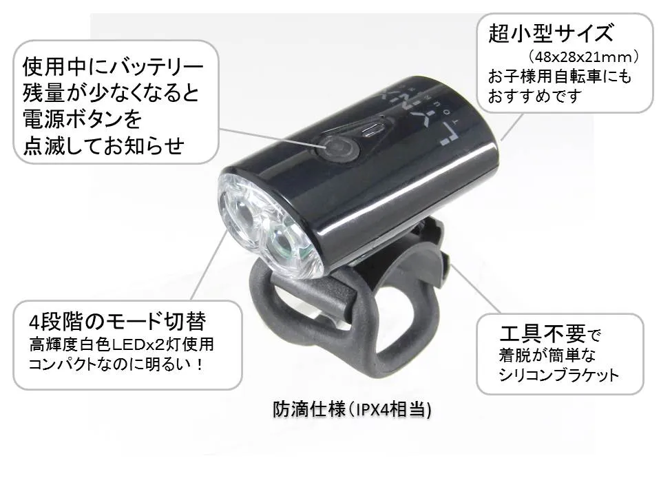 高輝度白色LED×2灯使用、ライト4段階切替。